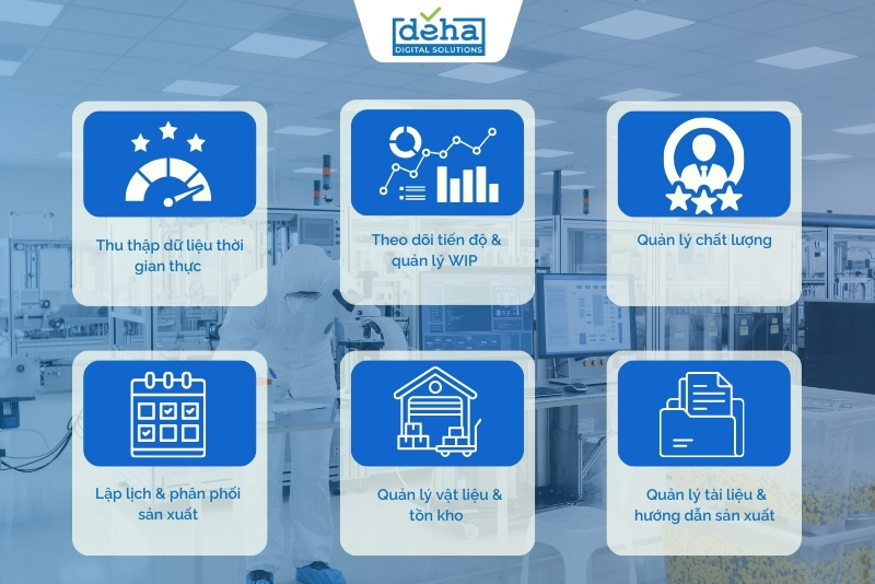 MES bao gồm nhiều module liên kết chặt chẽ, mỗi chức năng được thiết kế để giải quyết một nhóm vấn đề cụ thể trong sản xuất. Những chức năng này không chỉ giúp doanh nghiệp kiểm soát hoạt động tại xưởng theo thời gian thực mà còn tạo nền tảng cho cải tiến liên tục, tối ưu chi phí và nâng cao năng suất. Dưới đây là 10 chức năng cốt lõi của MES và cách chúng hỗ trợ doanh nghiệp tháo gỡ các khó khăn thường gặp.